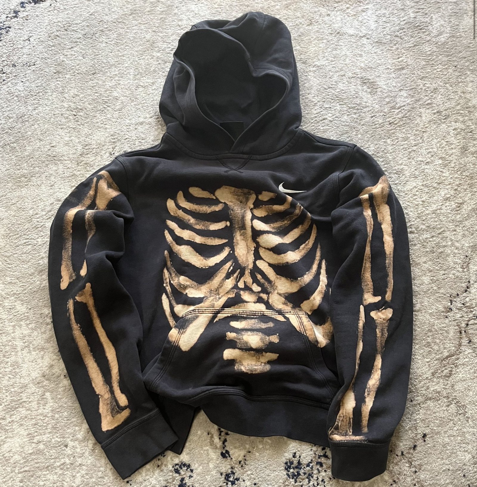 The interior lining might feature soft fleece for warmth, while the exterior is designed to be both weather-resistant and breathable—perfect for urban environments. Nike’s technical expertise ensures the hoodie is functional for active lifestyles, while the collaborative design elevates it to a fashion-forward statement piece.