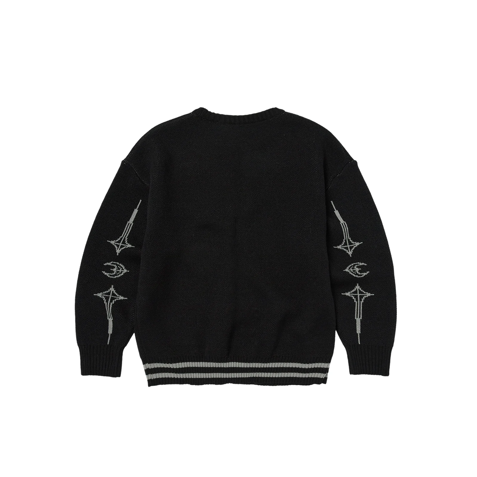 Beyond its visual appeal, the TC Bone Knit channels Thug Club’s core philosophy—one rooted in youth rebellion, community, and a refusal to conform. Co-founded by designers Simon and Min, the label thrives on dystopian futurism and chaotic fun, blending subcultural signifiers like cyberpunk detailing, motocross iconography, and horror motifs into wearable statements. The Bone Knit captures that sensibility perfectly: playful yet sinister, bold yet wearable.
