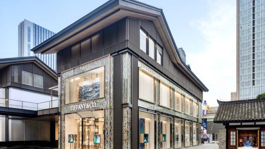 The Chengdu flagship is an architectural feat that merges modern luxury with subtle nods to local culture. The store spans three floors, making it Tiffany’s first triplex in China. Its façade is an elegant combination of glass and sleek metal accents, reflecting Tiffany’s contemporary aesthetic. However, the design also incorporates elements inspired by Chengdu’s rich heritage, such as patterns reminiscent of traditional Sichuan embroidery and subtle references to bamboo, a symbol of resilience in Chinese culture.