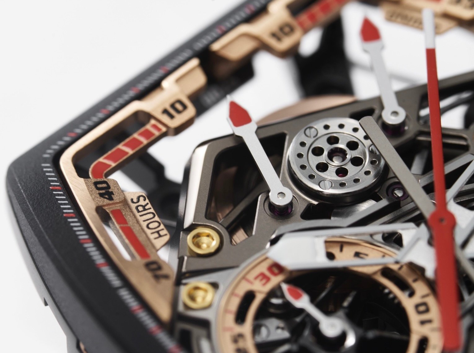 In the abstract, a tourbillon compensates for positional rate errors by averaging them across a rotating cage. In a watch meant to be thrashed in real-world dynamics, some might question whether a tourbillon is necessary. Richard Mille’s answer has always been yes, if the cage and its supports are engineered for shock resistance and the rest of the going train is specced to keep amplitude stable under intermittent loads (e.g., chronograph engagement). The RM 43-01’s tourbillon, offset within the architecture, is framed intentionally as an engine bay: visible, celebrated, and hardened.