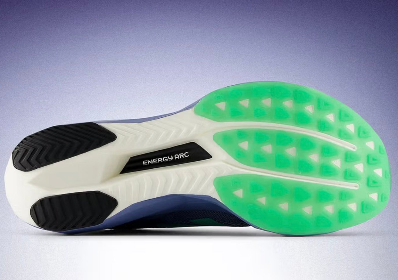 On the outsole, triangular traction pods in neon green highlight grip zones. Paired with black rubberized inserts for durability, the design ensures stability across different road conditions. For marathoners, the outsole structure can mean the difference between maintaining pace in the final miles or succumbing to fatigue.