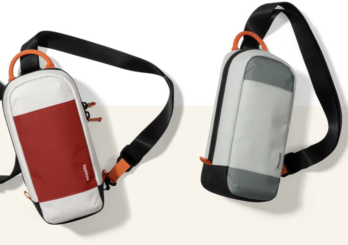 On the other end of the spectrum sits the tomtoc Sling Crossbody Bag, a more substantial statement piece for the gamer who travels with an entire setup. Its exterior resembles urban techwear gear: smooth lines, matte finishes, and smart compartmentalization. Inside, there’s space not only for the Switch 2 but also for chargers, cables, a power bank, and even a compact controller.