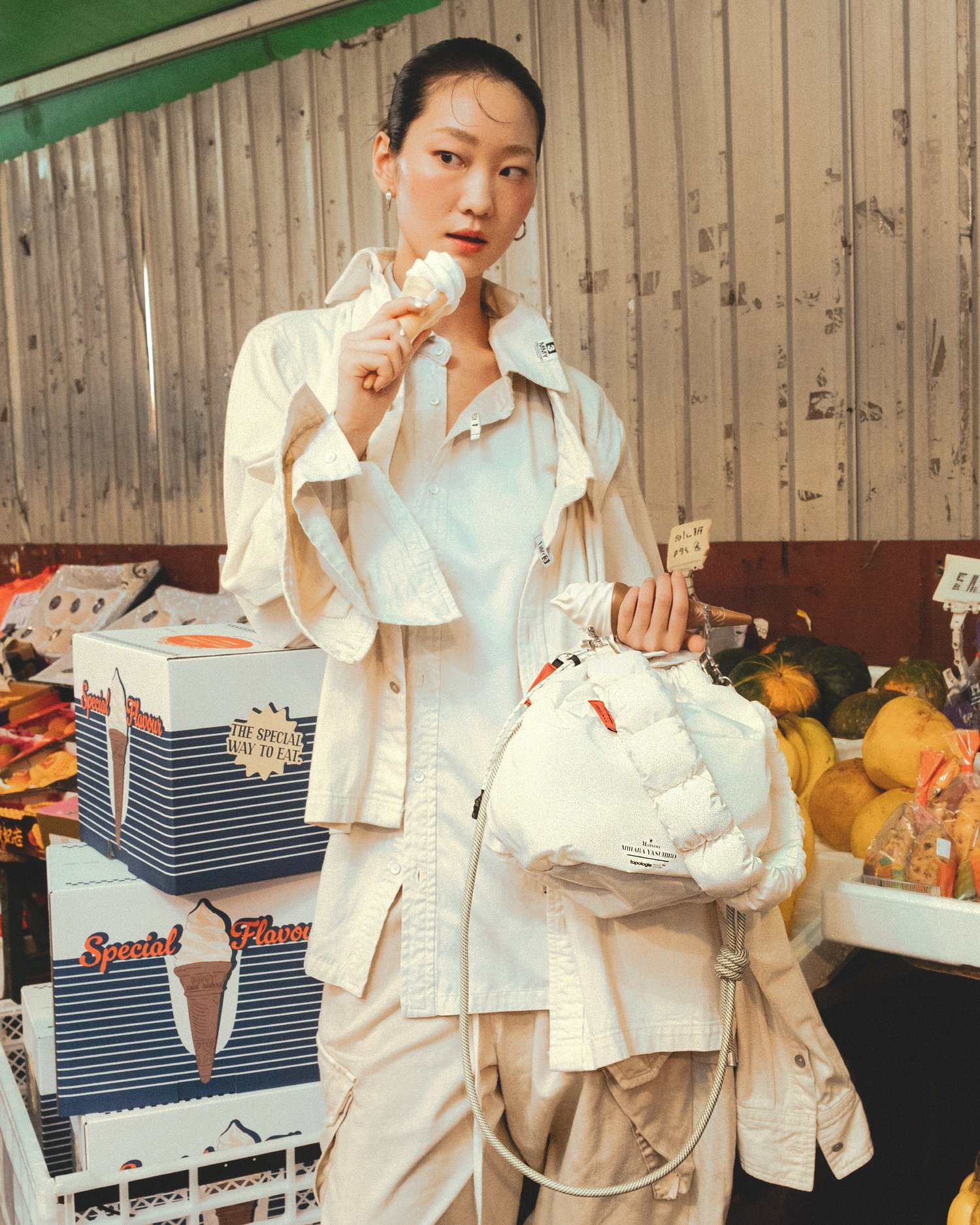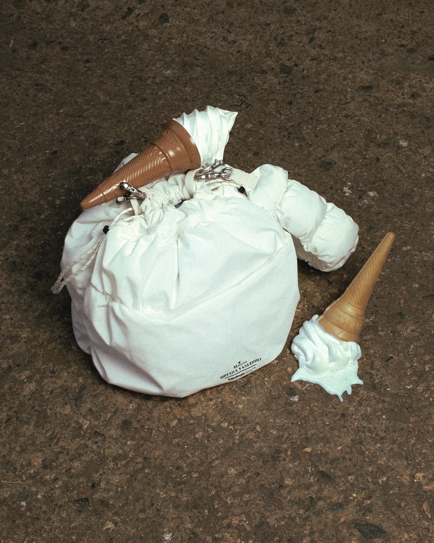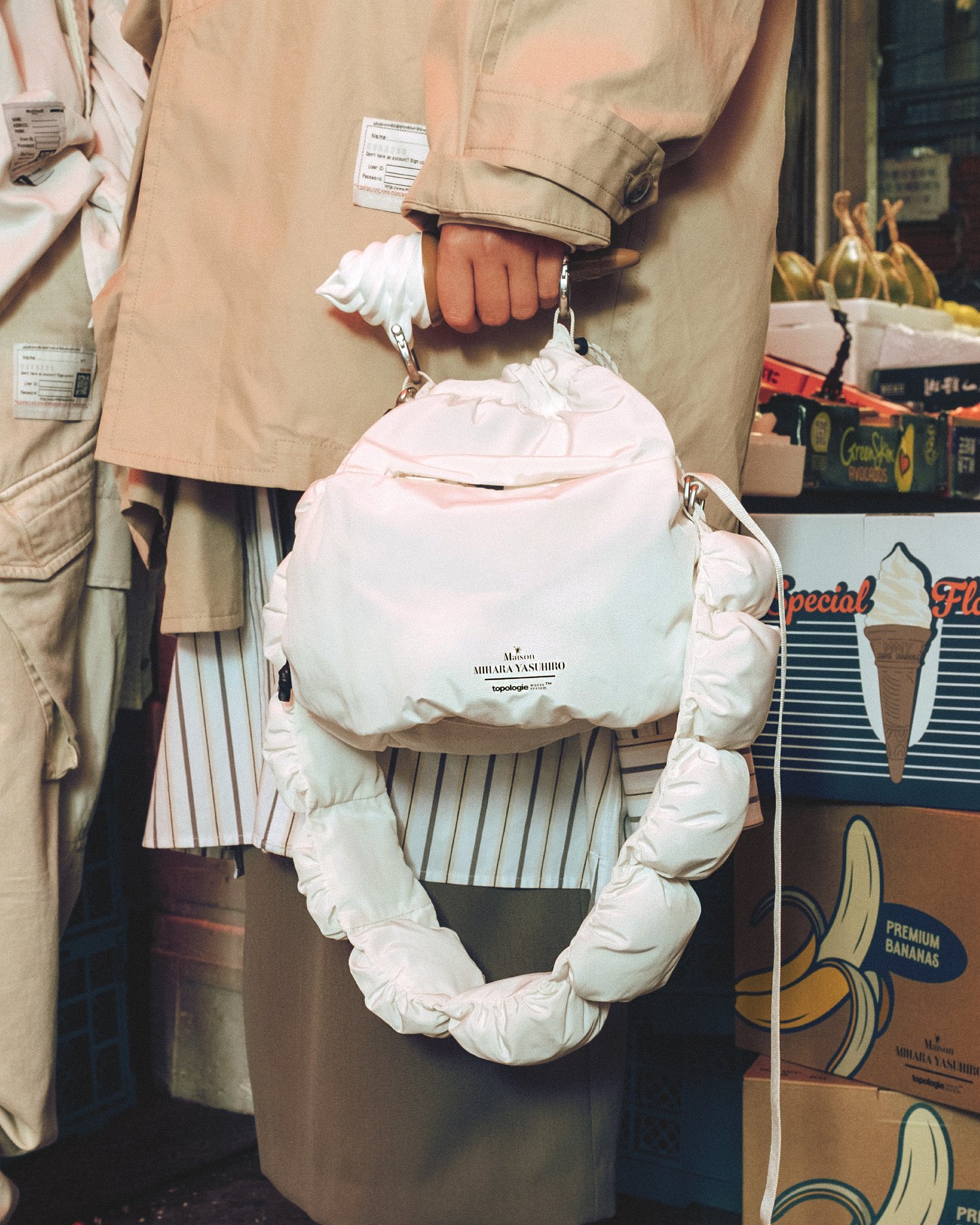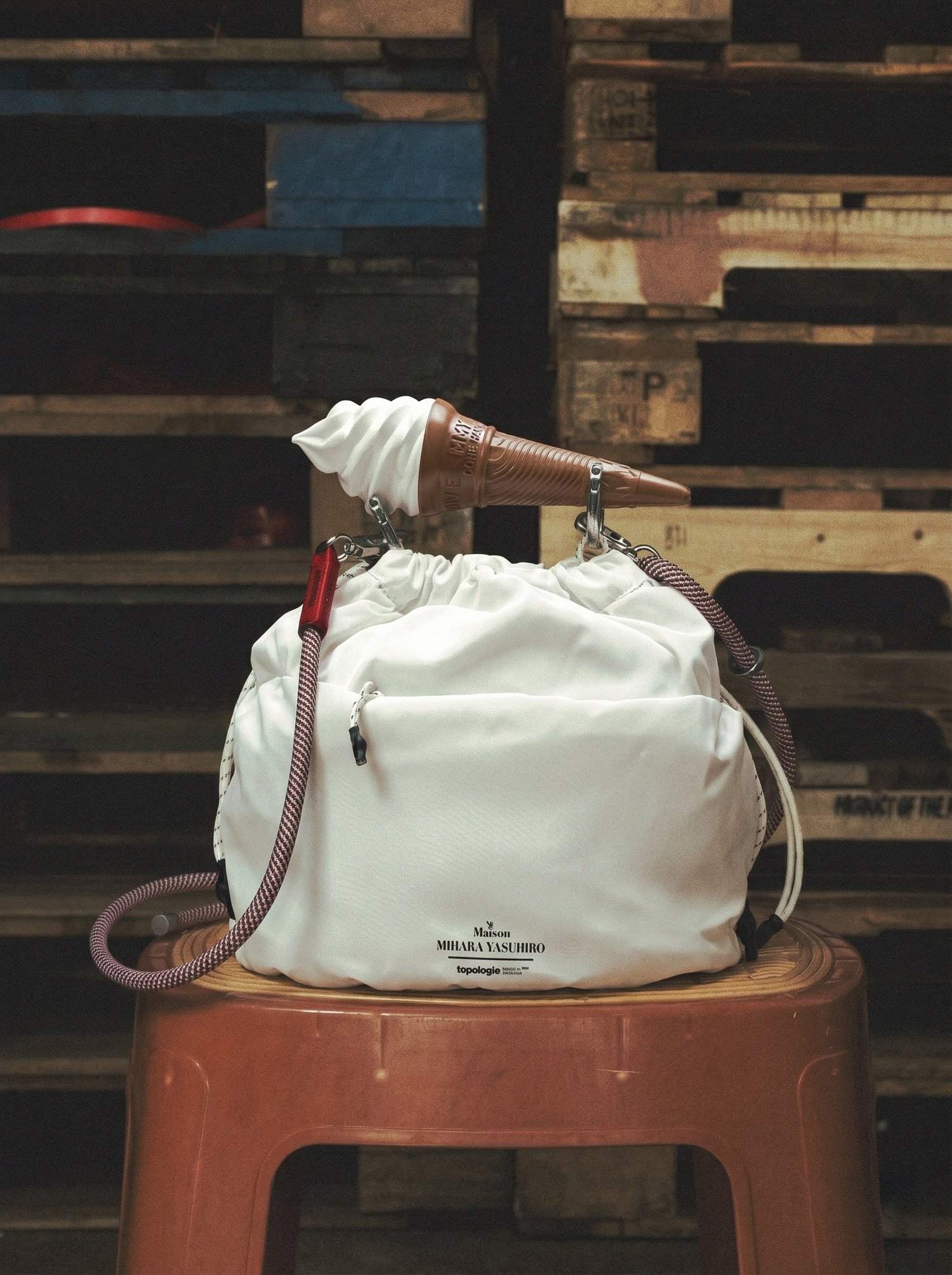 That’s where the shift begins. The genius of the Topologie x Maison MIHARA YASUHIRO capsule isn’t rooted in spectacle, but in displacement. Banana, soft serve, toothpaste—icons of daily repetition—are removed from their context and reintroduced as design.