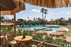 At the heart of the property, the private pool club floats somewhere between Andalusian daydream and Côte d’Azur glamour. Palms cast long shadows over tiled decks. Poolside service arrives not with fanfare but with the silence of good taste. In one corner, an indoor pool framed by Moorish arches feels like a cathedral of water, lit only by soft underwater glows and natural skylight.