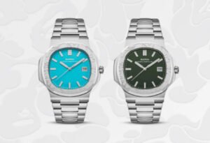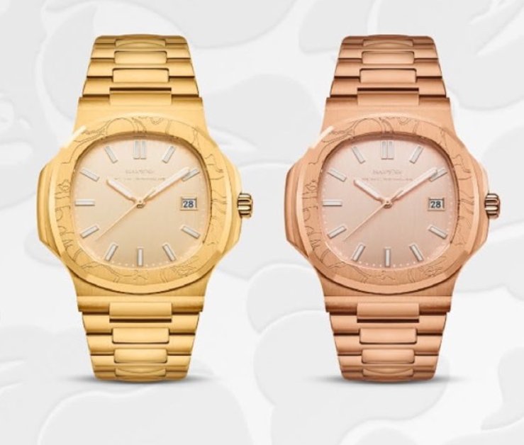 BAPE has never shied away from reinterpretation. Its BAPEX line—often seen as a tribute to iconic Swiss watches—has drawn both admiration and critique for walking the line between homage and parody. But with the Type 10, BAPE goes in a slightly different direction. Instead of leaning on the silhouette of a Rolex Submariner (as seen in the earlier Type 1 BAPEX), the Type 10 appears inspired by the Patek Philippe Nautilus—a grail in the luxury world known for its integrated bracelet and rounded octagonal bezel.