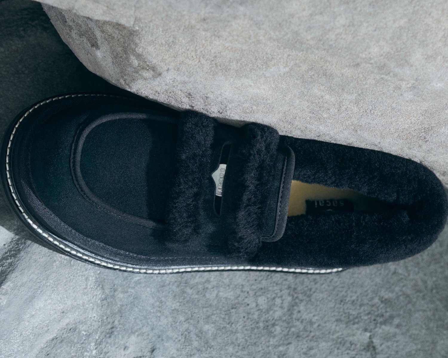 This reunion signifies more than a commercial gesture; it marks a creative dialogue between two design languages. UGG, rooted in Californian surf culture and beloved for its sheepskin craftsmanship, finds new context under sacai’s conceptual lens. Chitose Abe’s design philosophy, centered on hybridization and reconstruction, transforms UGG’s softness into structure — and vice versa. The collection is both grounded and elevated, merging material intimacy with architectural form.