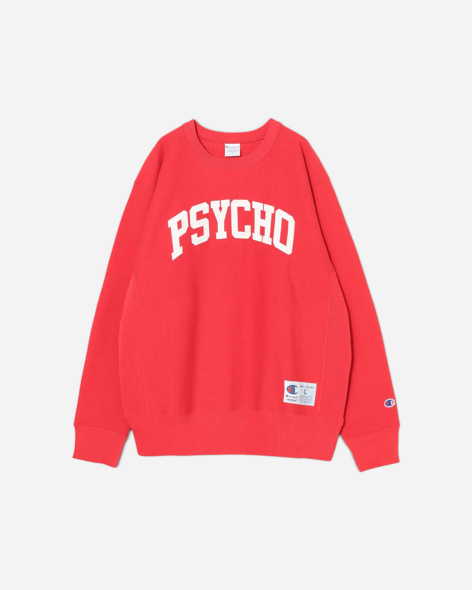 There are connection that feel inevitable, and there are connections that feel like provocations — deliberate fractures in the expected order of things. The Undercover Men’s Champion Psycho Crewneck Sweatshirt lands unmistakably in the latter category. It sits at the intersection of heritage sportswear and conceptual Japanese fashion, a meeting point where athletic nostalgia rubs against Jun Takahashi’s darker, cerebral design language. This isn’t simply a sweatshirt; it’s an artifact of two worlds that rarely collide, a garment that uses familiarity as a gateway to distortion.
