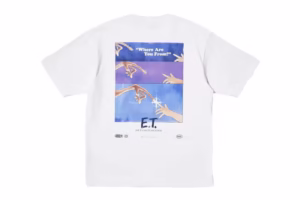 The Uniqlo UT x Universal Pictures collection is packed with nostalgia, featuring imagery from some of the most memorable moments in cinematic history. For E.T. fans, there’s a t-shirt with the iconic scene of Elliott and E.T. hugging, another featuring the finger touch moment, and one with the famous “E.T. phone home” phrase. The Jaws-inspired pieces include a t-shirt with the movie’s original poster design and another with Chief Brody’s unforgettable line, “You’re gonna need a bigger boat.”