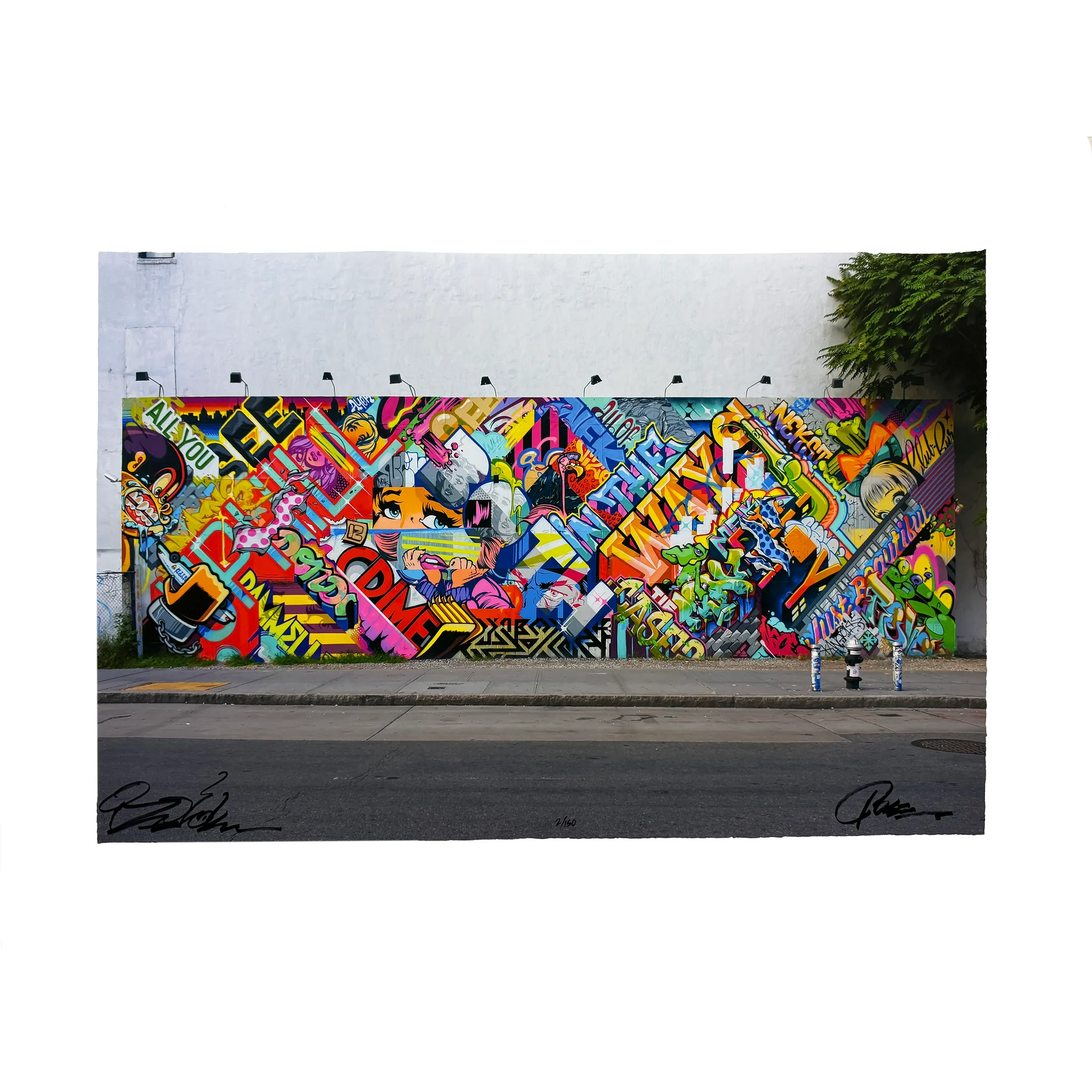 Based on their 2013 mural painted on New York’s iconic Bowery Wall, Uphill Both Ways captures a moment when graffiti transcended its illegal, ephemeral roots to enter the rarefied spaces of institutional acknowledgment and fine art. Through this new print, POSE and REVOK reflect not just on a shared past but on the very essence of contemporary art’s shifting boundaries.