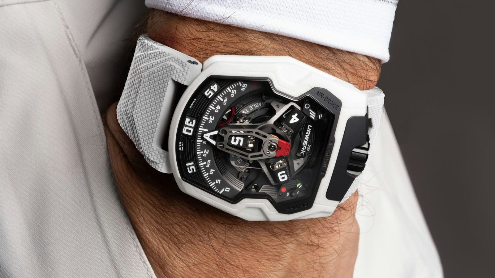 What truly sets this latest version of the UR-230 Polaris apart is its innovative case material, which introduces a frosty white aesthetic that evokes the icy landscapes of polar regions. Urwerk has long been celebrated for its use of unconventional materials—whether titanium, carbon, or advanced alloys—and this new edition continues that legacy by pushing material science into uncharted territory.