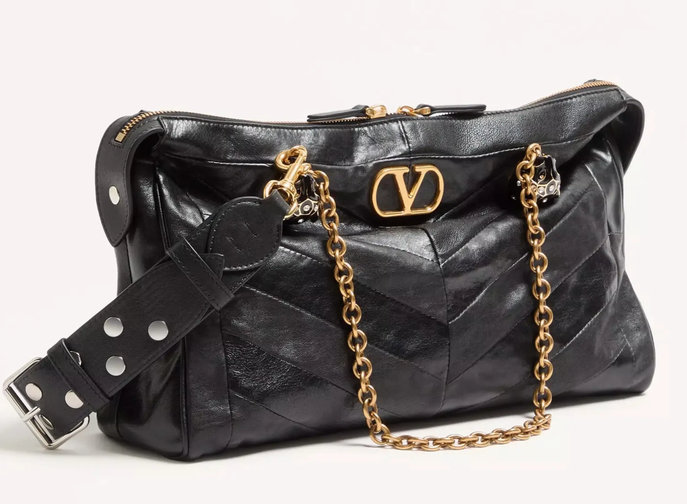 The Panthea sits squarely within this trajectory. It embodies restraint without austerity. The piece rejects obvious flash, focusing instead on the tactile conversation between shiny and matte leathers, the architectural rhythm of chevron patchwork, and the sculptural jewelry-like hardware. In doing so, it reaffirms Valentino’s ongoing ability to modernize Italian luxury without losing its soul.
