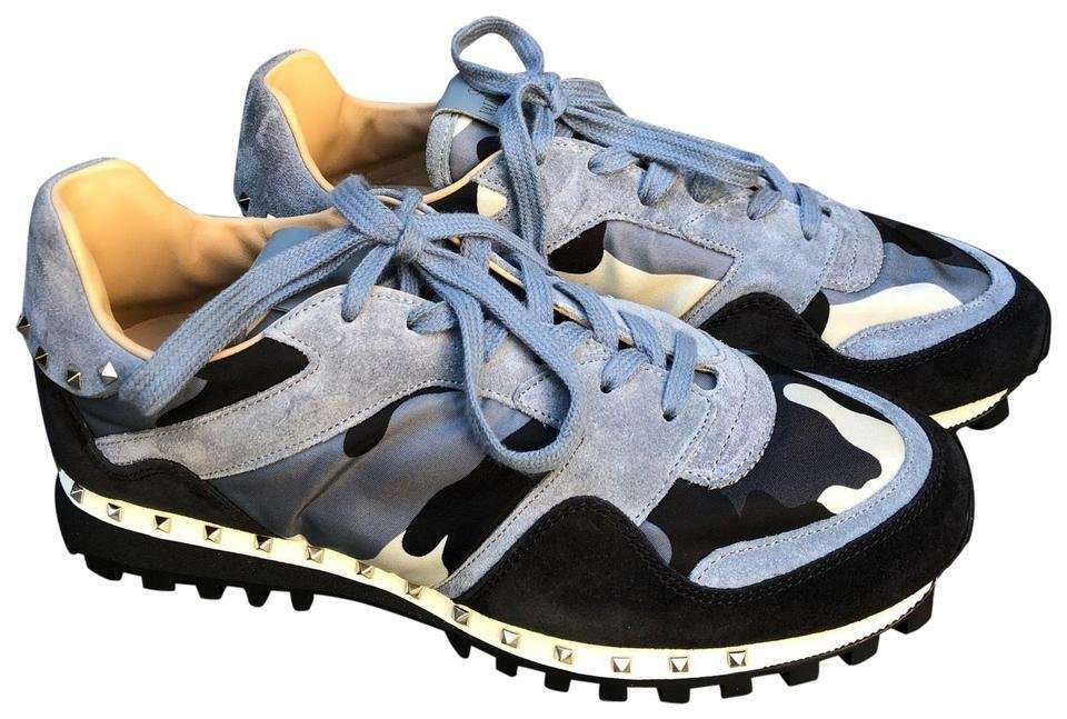 The choice of calfskin, a hallmark of luxury footwear, underscores Valentino’s commitment to quality. Calfskin is known for its soft texture, durability, and ability to age gracefully, making it an ideal material for high-end sneakers. Additionally, the use of mesh and other technical fabrics in certain designs, such as the Rockrunner, reflects the brand’s acknowledgment of contemporary trends where functionality is just as important as appearance. The integration of these materials ensures that the Rockstud Trainers are not just visually striking but also practical for everyday wear.