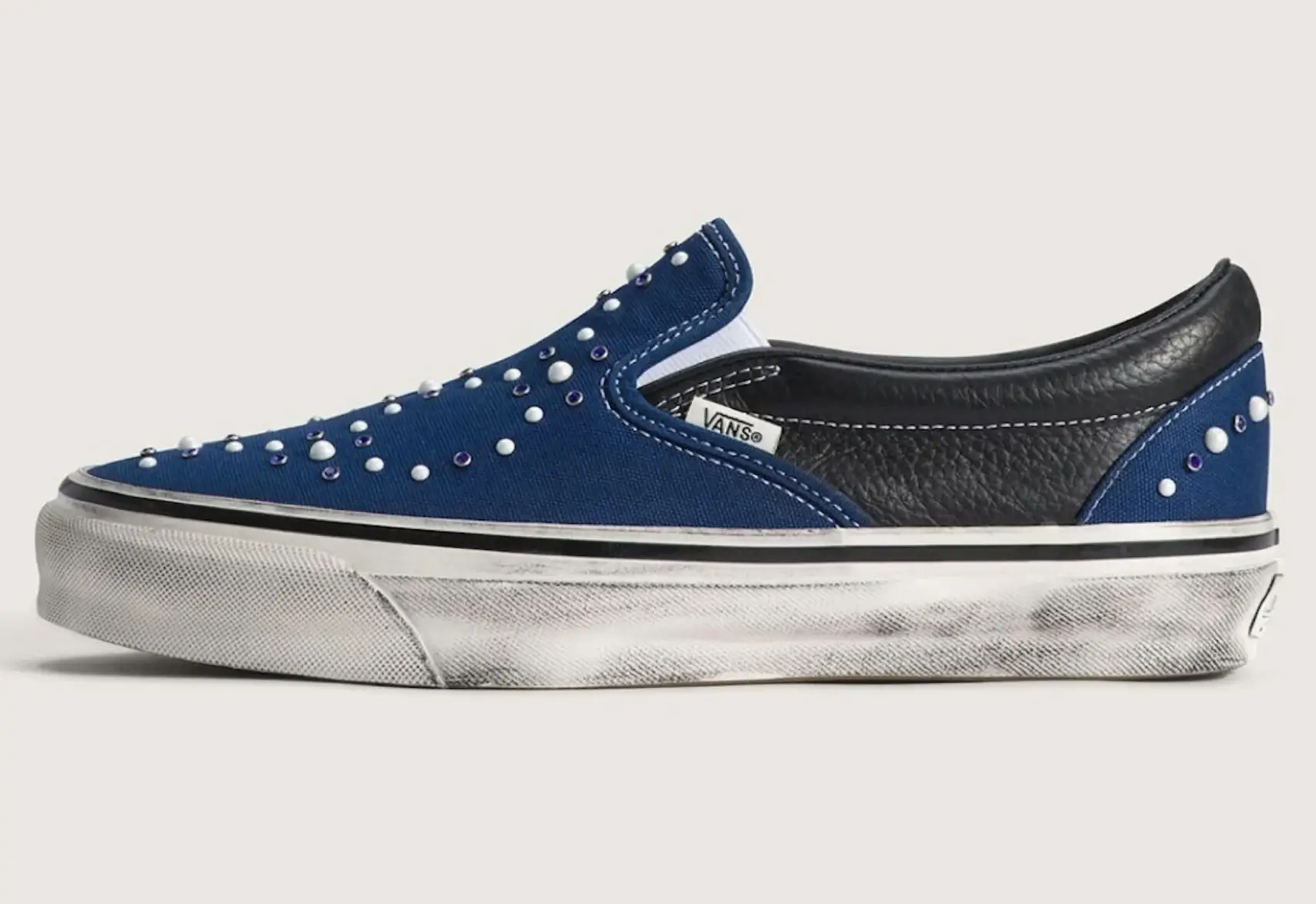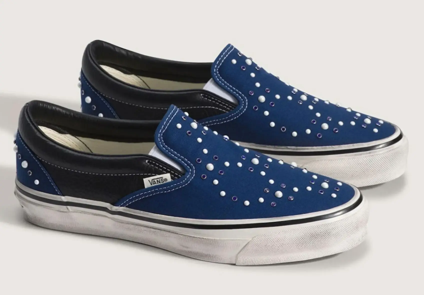 Instead of introducing entirely new shapes or futuristic materials, Vans focused on surface detail and texture. Pearl-like accents, metallic studs, and glossy finishes transform the familiar silhouettes into something that feels almost jewel-like under light.