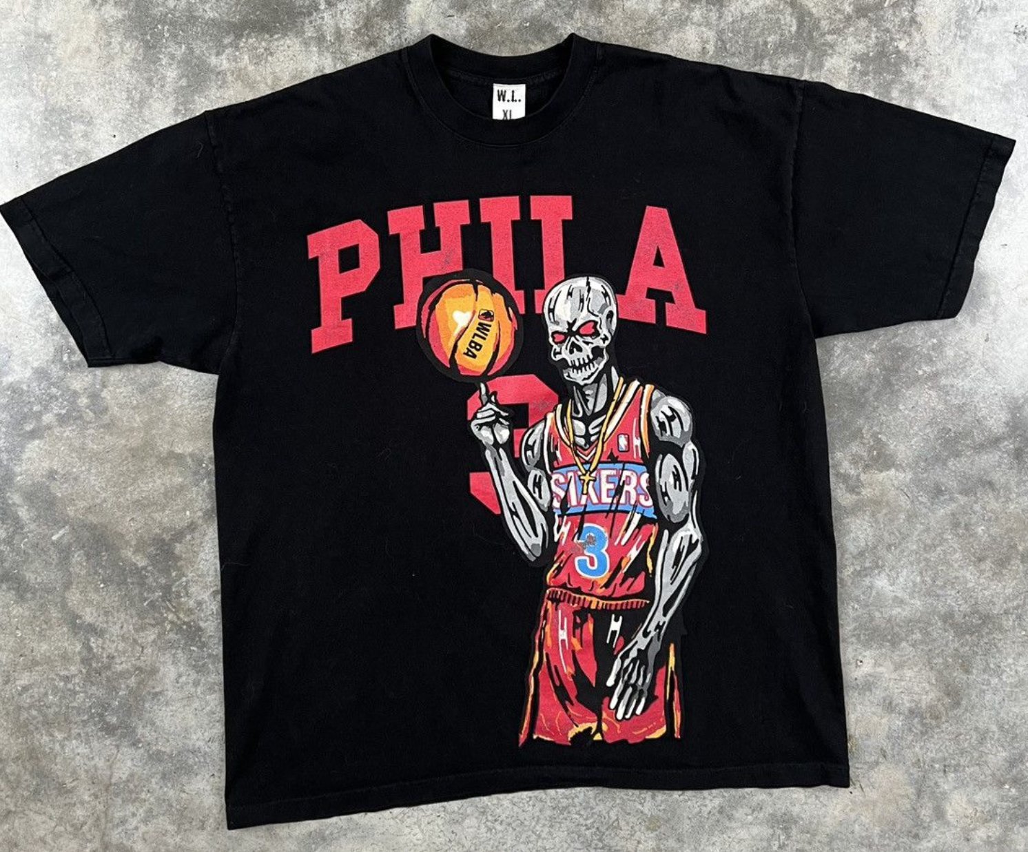 The Philadelphia 76ers Allen Iverson tee by Warren Lotas is a masterclass in design and cultural homage. The shirt typically features a striking graphic of Allen Iverson, often in a pose that captures his intensity and passion for the game. Lotas’ interpretation is not just a photographic representation; it’s a stylized rendition that brings out the raw energy Iverson exuded on the court.