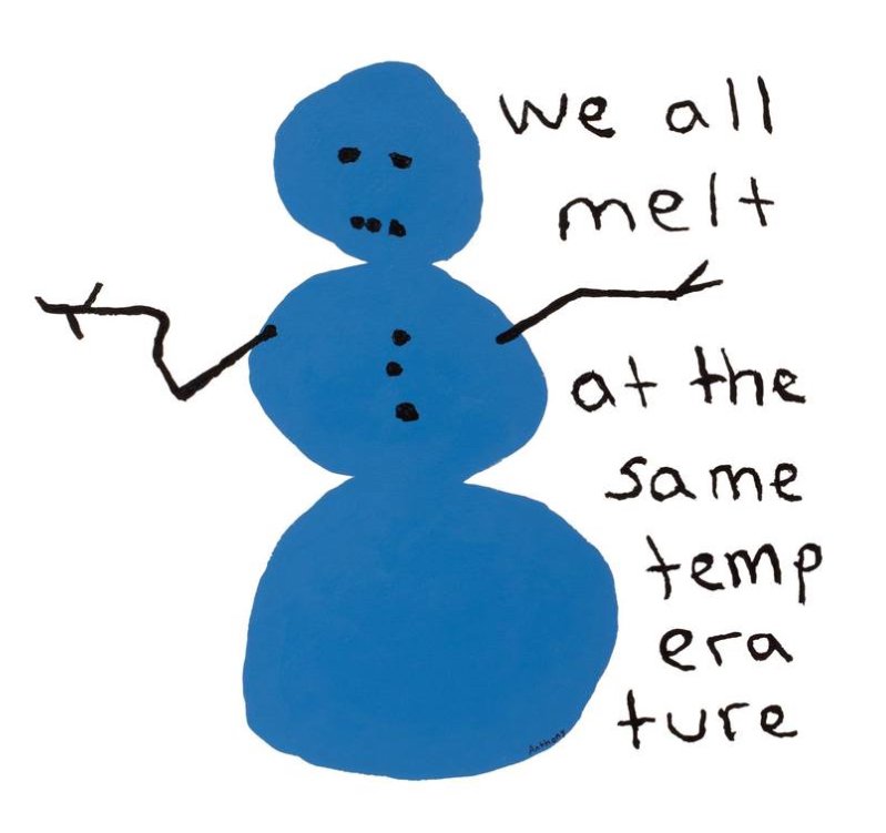 In a career defined by humor and thought-provoking visuals, We All Melt at the Same Temperature stands out as a masterful example of Becker’s ability to distill complex ideas into simple, evocative art. It is a work that speaks to the heart as much as the mind, making it a true testament to the power of contemporary art.
