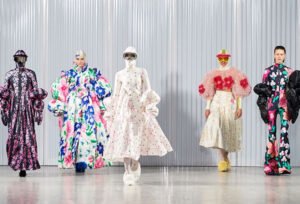 Here, under heavy spring skies, names like Latimmier, Rolf Ekroth, and Sini Saavala present visions not tied to seasonal aesthetics, but to philosophical inquiry. Latimmier subverts masculine dress codes through a queer lens, unraveling the tight stitching of historic norms. Rolf Ekroth offers garments that mutate — zip, fold, refold — depending on the wearer’s inner world. Sini Saavala reanimates post-consumer waste into garments that resist fixed forms altogether. Each designer creates a conceptual dialogue with Merihaka’s massive structures — a reflection on what architectures shelter us, and what must be torn down.