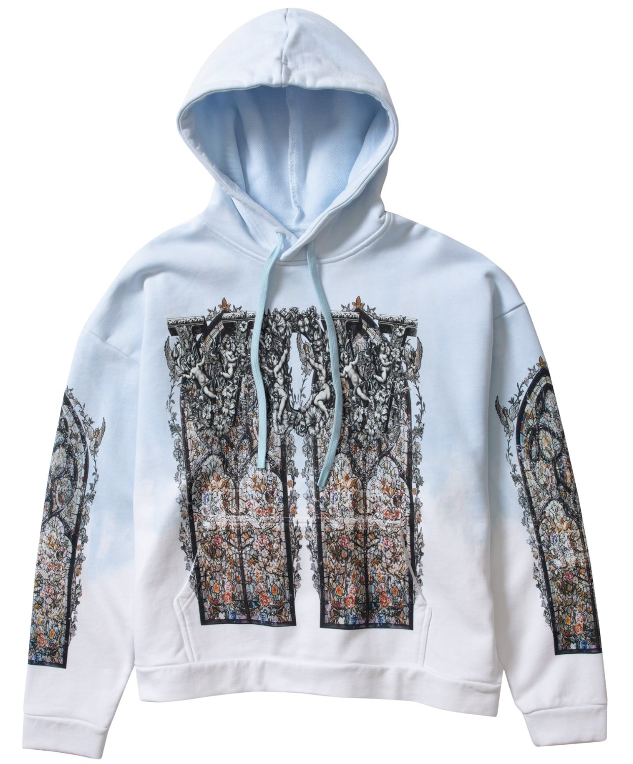 Original artwork is strategically placed—not central, but scattered. These design placements don’t cohere into one singular graphic; instead, they accumulate, layer, resist simplicity. They mimic the chaos of modern protest signs, the multiplicity of voices in any social movement, the fragments of information we cling to in a world overwhelmed by data. In this way, the Ignatius Hoodie becomes a patchwork of impressions—visual noise distilled into textile expression.