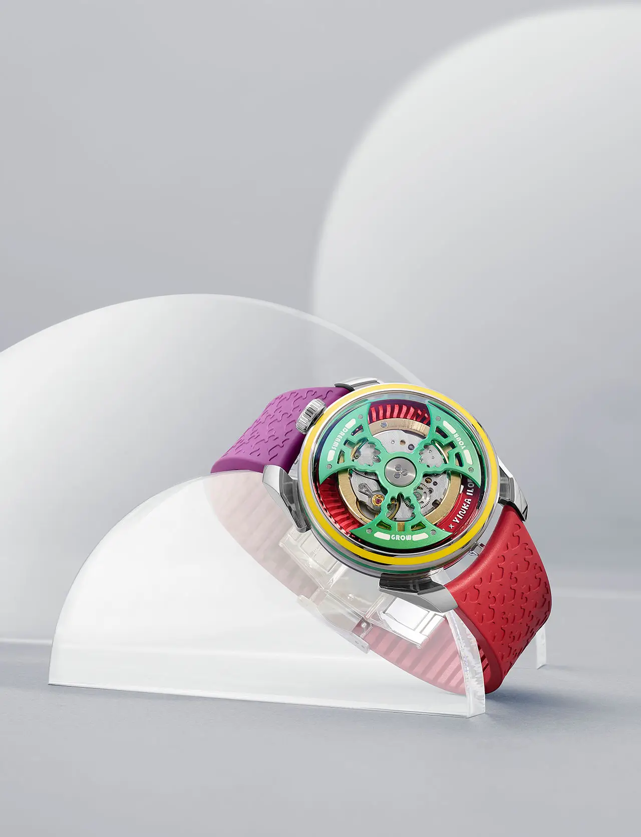 Color is deceptively complex in watchmaking. It affects legibility, material integrity, finishing, and even the behavior of light under sapphire crystal. Ilori’s palette—hot pinks, sunlit yellows, sky blues, forest greens, coral oranges, ultraviolet purples—pushes the boundaries of what luxury watch dials typically attempt.